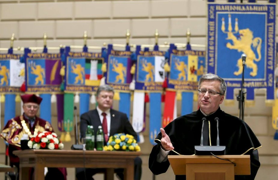 Коморовский поблагодарил за награду, также отметив, что получение звания почетного доктора польским президентом в украинском университете свидетельствует о хороших взаимоотношениях стран.