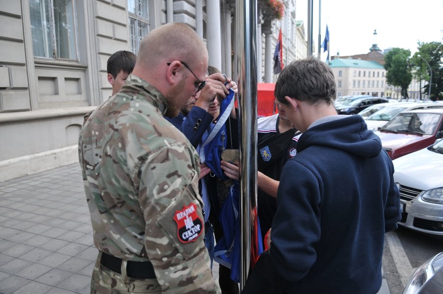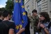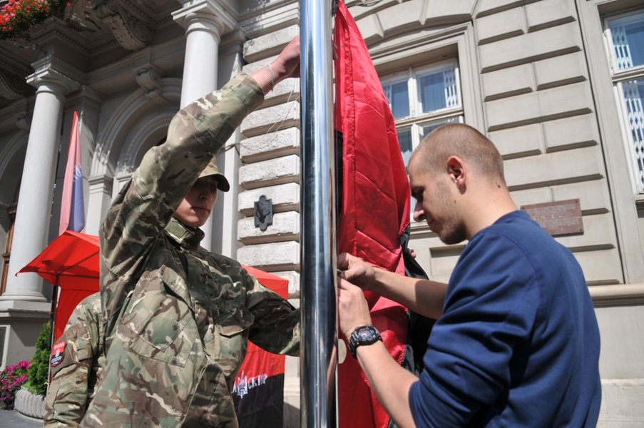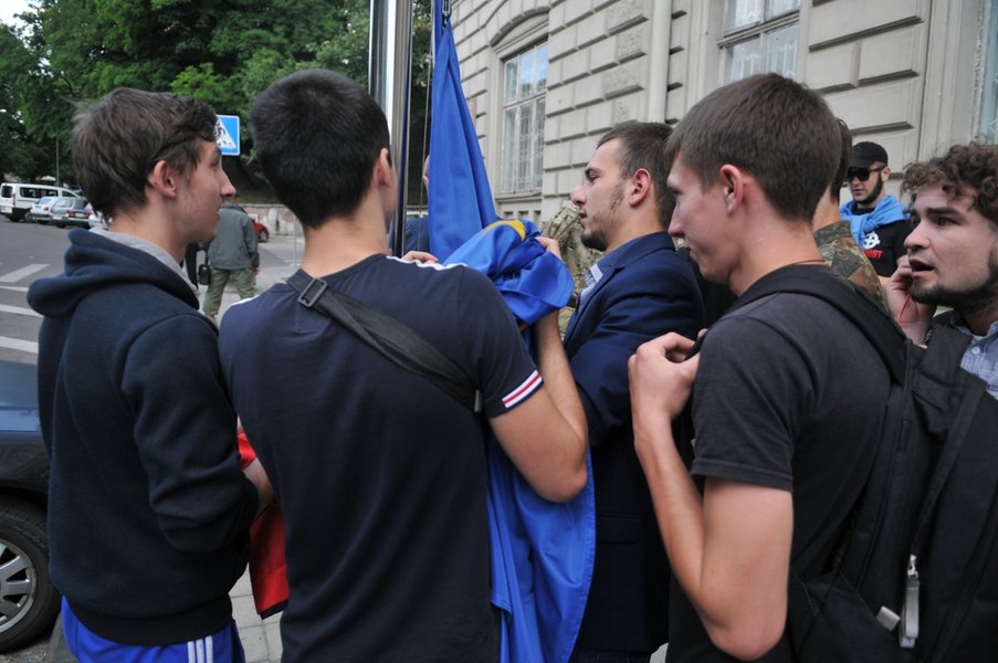 Активисты заменили флаги ЕС возле Львовской ОГА на красно-черные