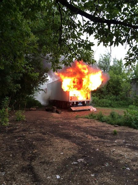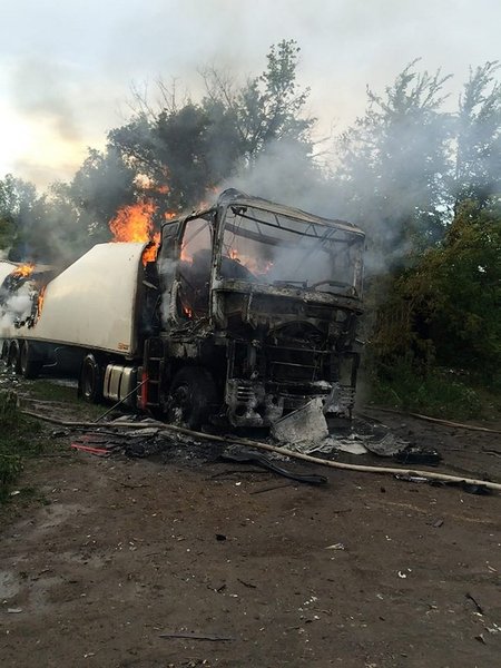 "Сегодня блуждающий танк сепаров вышел на дистанцию стрельбы, произвел выстрел и... попал прямо в фуру, вместе со всем ее содержимым", - добавил Бирюков.