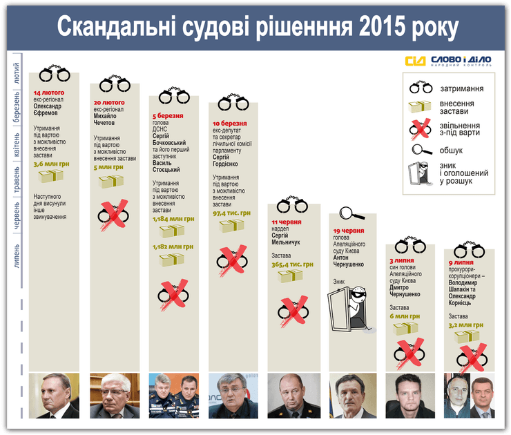 С начала года украинский суд отпустил под залог восьмерых чиновников разного уровня. Среди них – судьи, экс-депутаты и прокуроры. В целом за свою свободу задержанные госслужащие заплатили более 20 млн грн.