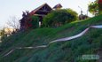 Там, где забор еще не установлен, "частная" территория отделена маркерной лентой. Вход на пляж возможен, но через поваленные секции забора. У главного входа в пансионат экс-"регионала" дежурят охранники.