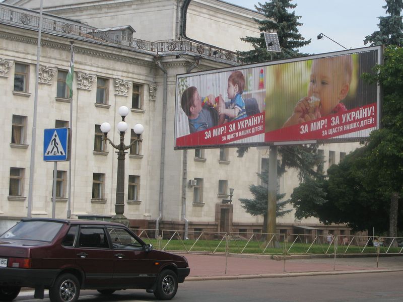 Чернигов в воскресенье пестрит предвыборной агитацией двух кандидатов, несмотря на то, что такая агитация по закону должна быть прекращена за день до выборов. Правда, агитация косвенная. Борды, выполненные в стиле избирательной кампании Березенко, призывают к миру и счастливой жизни ради Украины и наших детей, а борды Корбана учат тому, что "реальная еда лучше пустых обещаний".