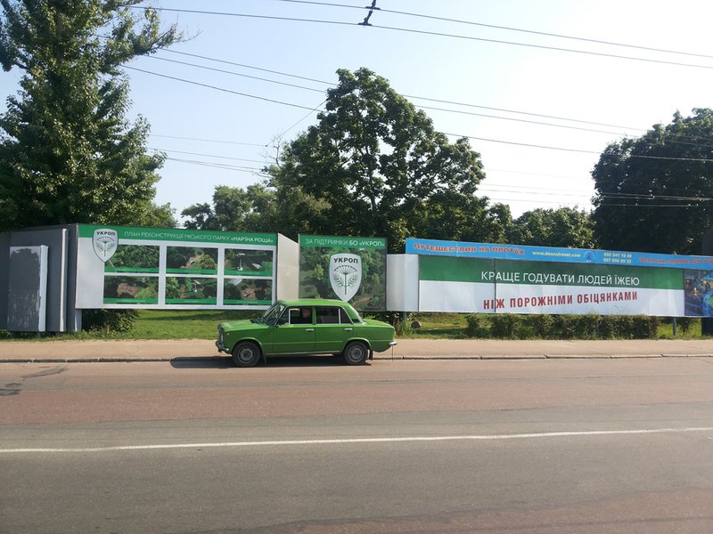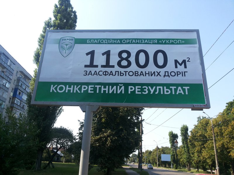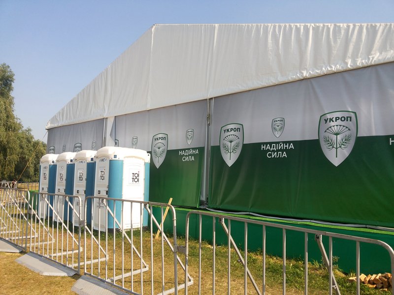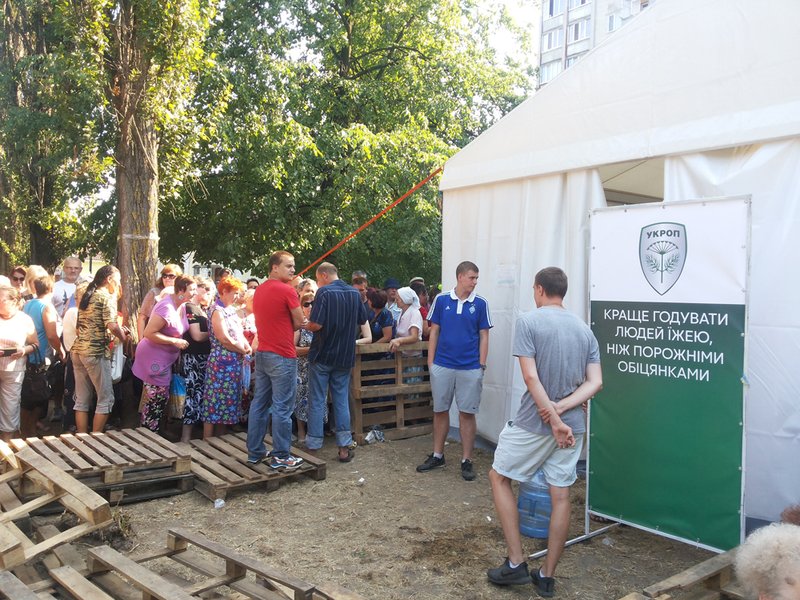 Рядом с большой белой палаткой, в которой находится штаб – бесплатный лунапарк, куда съехались избиратели с детьми со всего города и близлежащих сел. Перед входом в палатку – слоган "Укропа" из пенопластовых букв: "Надійна сила – конкретний результат". У большинства людей, входящих в палатку и выходящих из нее, на руке резиновый желтый браслет с надписью: "Я – УКРОП". Я уже не задаю дурацких вопросов о косвенной агитации.