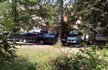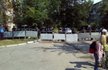 Перед зданием суда проходит митинг, а милиция выставила ограждение. За порядком возле суда помогают следить представители гражданского формирования "Полтавская Сечь".