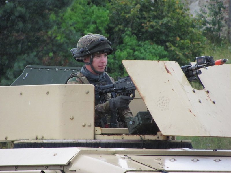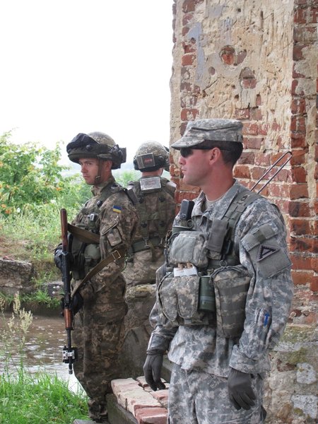 Взвод военной полиции ВС США вместе с украинскими морпехами на БТР-80 и бронеавтомобилях HMMWV сопровождал колонны автобусов с временно перемещенными лицами. Беженцев доставили в лагерь, где ими занялись медики и представители гуманитарных миссий.