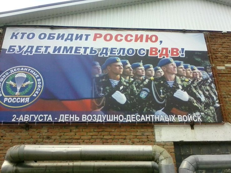 На поздравительных плакатах ко дню ВДВ в России были изображены украинские "голубые береты", сообщает "Новое время".