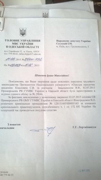 Уголовное дело открыто в связи с многочисленными нарушениями трудовых прав в Криворожском факультете "Одесской юридической академии"
