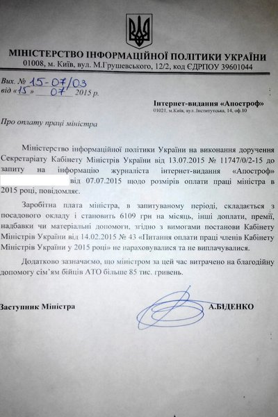 По этой же причине повышенную зарплату может получать глава Минобороны Степан Полторак, однако ведомство еще не предоставило ответ о зарплате министра.