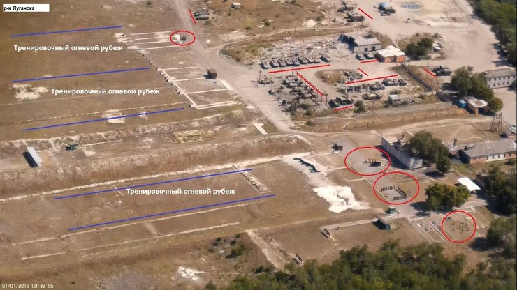 "На фотографиях - две базы российских террористических войск; по совместительству эти базы являются тренировочными полигонами. Первая база расположена под Луганском (12 км от наших позиций), вторая под Дебальцево (18 км от наших позиций)", - сообщили волонтеры в Facebook.