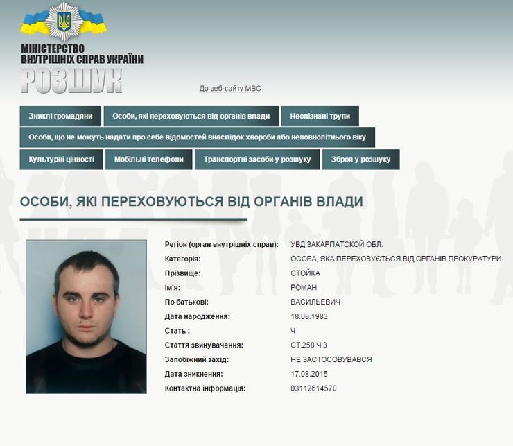 Напомним, по информации Министерства внутренних дел, Роман Стойка ранее работал оперуполномоченным отделения уголовного розыска Ужгородского горотдела УМВД, откуда был уволен в 2009 году из-за служебного несоответствия.