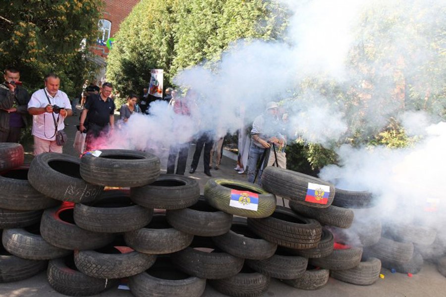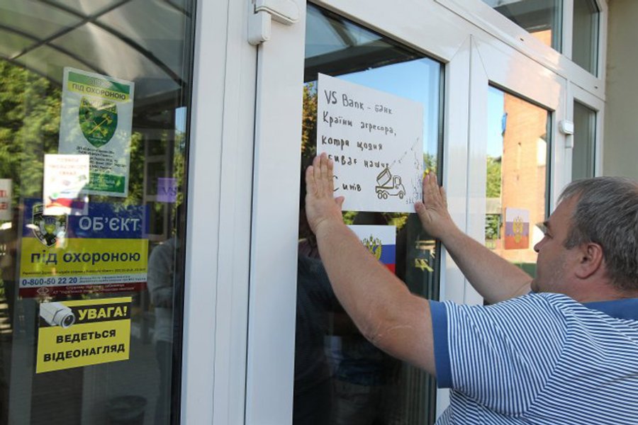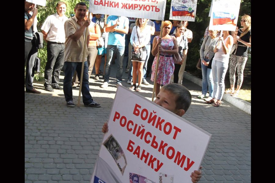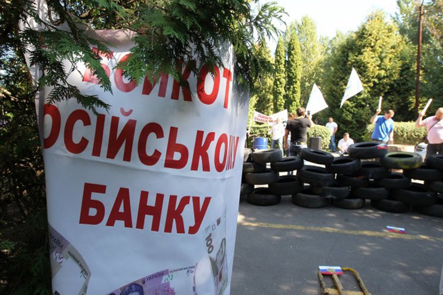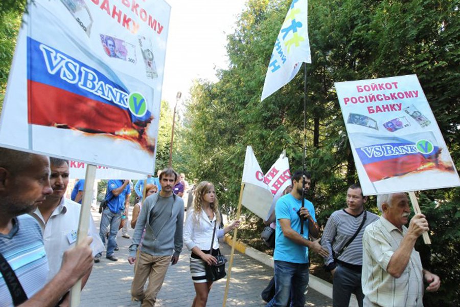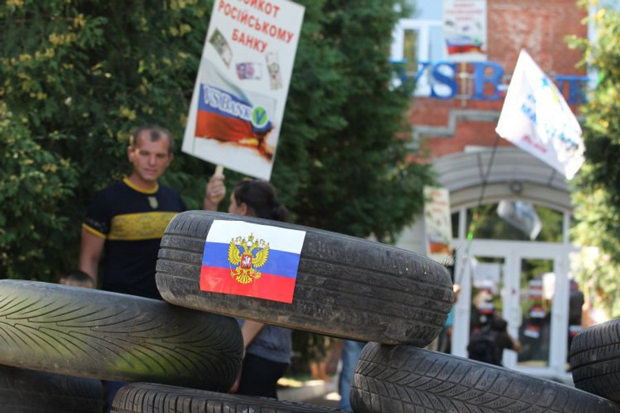 20 августа активисты организовали во Львове бессрочную акцию против российских банков. Пикетчики требуют от банков в течение двух недель прекратить деятельность и покинуть территорию Львовской области