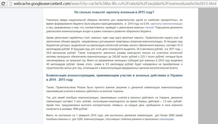 Издание приводит часть документа "Рост выплаты военным в 2015 году", где под заглавием "Компенсация военнослужащим за участие в боевых действиях в Украине в 2014-2015 годах" указано: "По состоянию на 1 февраля денежную компенсацию получили более 2 000 семей погибших и 3 200 военных, получивших тяжелые ранения и признанных инвалидами".