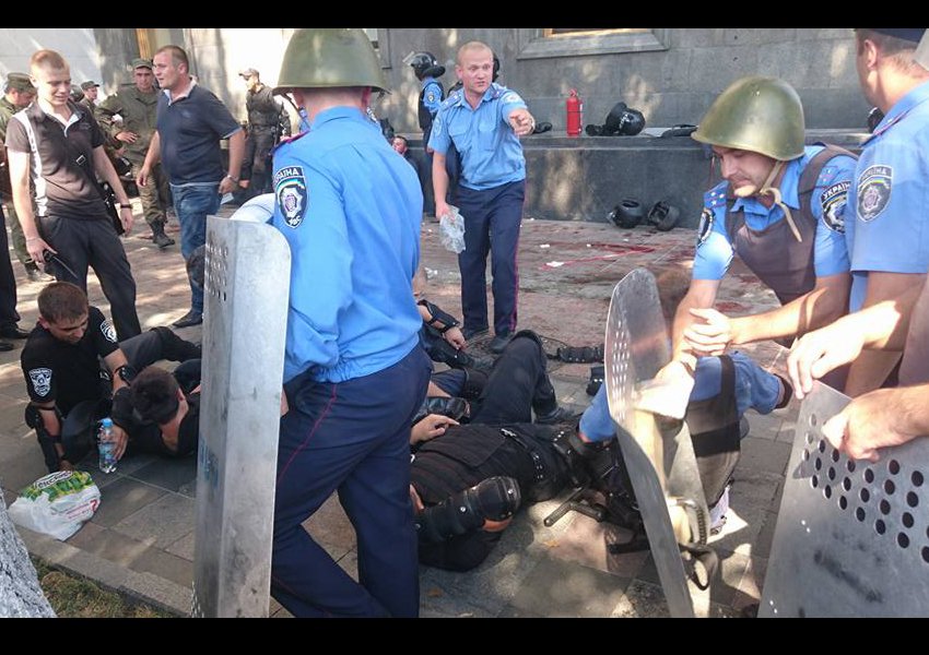 Во время массовых беспорядков под зданием Верховной Рады ранены несколько десятков милиционеров. По словам советника главы МВД Антона Геращенко, в охраняющих парламент военнослужащих была брошена боевая граната