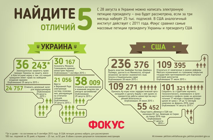 Найдите пять отличий. Главные электронные петиции в Украине и США
