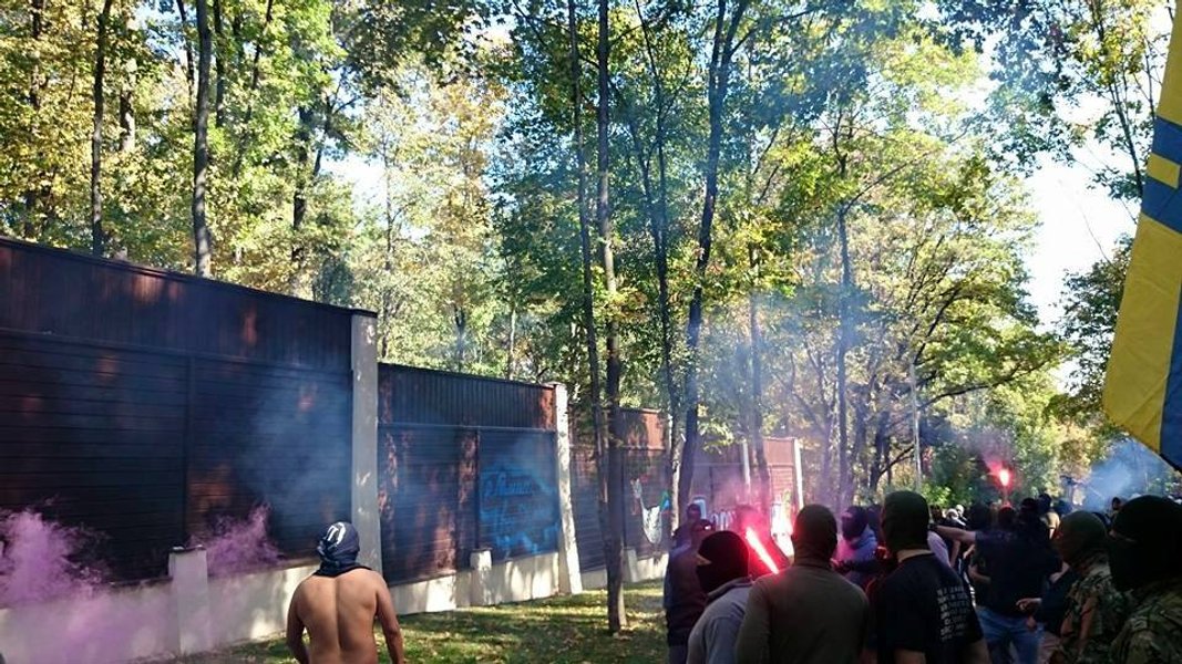 Ранее активисты провели акцию протеста у дома народного депутата, экс-губернатора Харьковщины Михаила Добкина в Харькове. Пикетчики были одеты в камуфляж и держали флаги с символикой батальона "Азов". Они повесили на дом Добкина табличку "ул. Беркута" и разрисовали забор. Якобы были брошены несколько взрывпакетов.