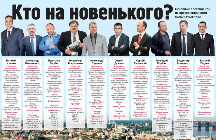 Все остальные кандидаты будут участвовать в выборах разве только для того, чтобы лишний раз напомнить о себе или же стать "тараном" для своих партий на выборах в Киевсовет — как, например, недавно арестованный народный депутат Игорь Мосийчук, которого в мэры выдвинула Радикальная партия. Вряд ли кто-то из них наберет больше 1% голосов избирателей. Тем не менее их сторонники могут сыграть решающую роль во втором туре выборов. Судьба главного кресла столицы будет зависеть от того, сможет ли оппонент Виталия Кличко во втором туре создать мощную антимэрскую коалицию и привлечь на свою сторону весь недовольный электорат. В любом случае сегодня на уверенную победу нокаутом, как это было в 2014 году, Виталию Кличко рассчитывать не приходится.