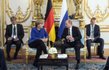 Президенты Украины, Германии, Франции и России – Петр Порошенко, Ангела Меркель, Франсуа Олланд и Владимир Путин – проводят переговоры в "нормандском формате" прямо на улице перед Елисейским дворцом в Париже.