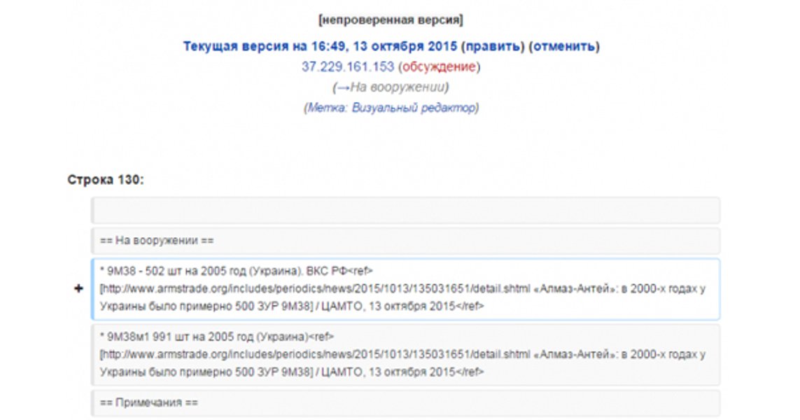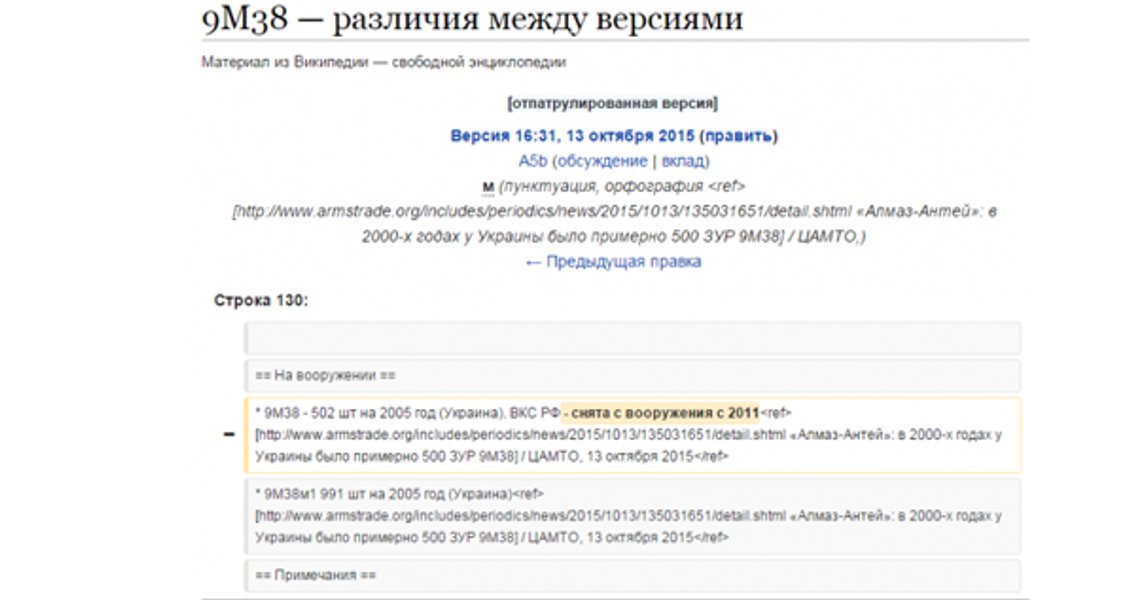 После отчета Совета безопасности Нидерландов по катастрофе Boeing 777 над Донбассом россияне решили исправить в Википедии информацию о ракете серии 9М38 зенитного ракетного комплекса 9К37 "Бук", сообщает УНИАН.