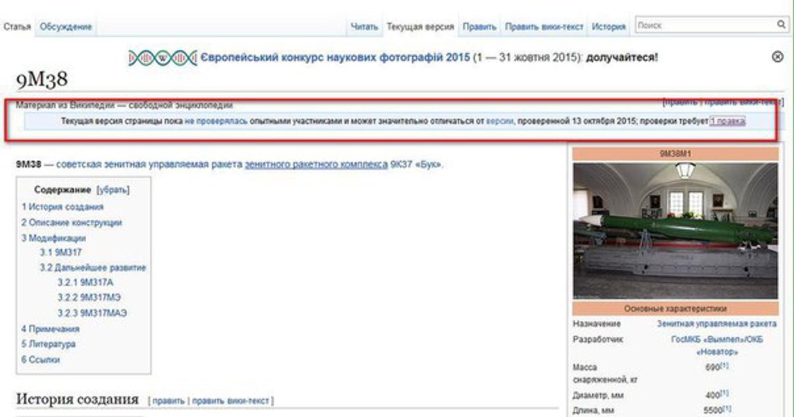 При этом в Википедии отмечается, что "текущая версия страницы пока не проверялась опытными участниками и может значительно отличаться от версии, проверенной 13 октября 2015, проверки требует одна правка".