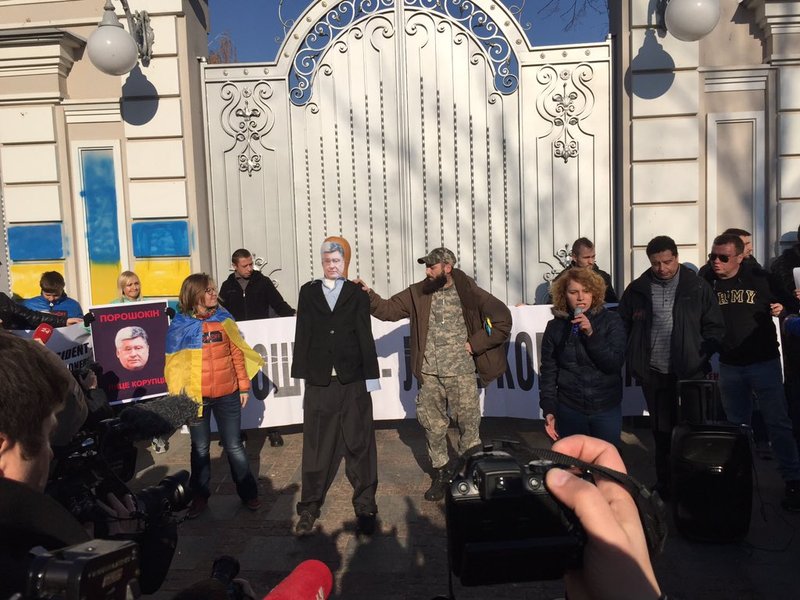 Под особняком, где проживает президент Украины Петр Порошенко, собрались активисты "Автомайдана", которые проводят пикет, передает УНИАН.