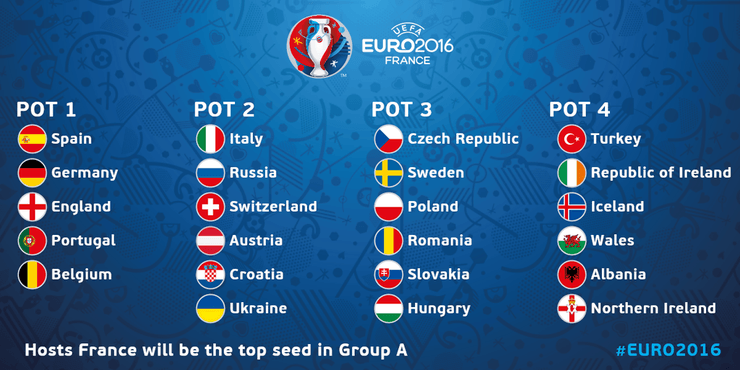 Жеребьевка Евро-2016 состоится 12 декабря в Париже.