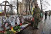 В Киеве сотни люди идут на Институтскую улицу, где происходили трагические события, чтобы возложить цветы к Кресту Героев Небесной сотни. Движение транспорта на этом отрезке улицы Институтской перекрыто. Также территория возле Креста ограждена металлическим забором, правоохранители пропускают людей к мемориалу, предварительно проверив их металлоискателями.