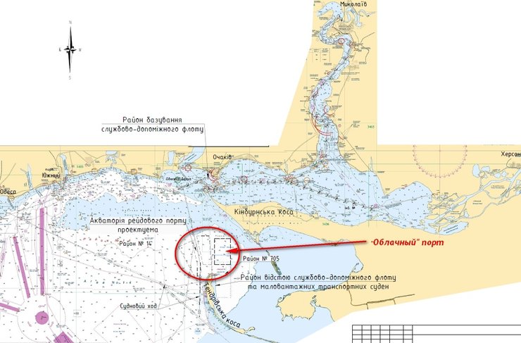 Рейдовый порт расположится в районе между оконечностями Тендровской и Кинбурнской кос Днепро-Бугского лимана.