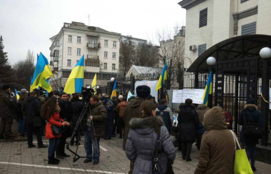 Члены Меджлиса крымскотатарского народа, правозащитники и переселенцы пикетируют посольство России в Киеве. Они протестуют против ущемления прав человека в оккупированном Крыму, передает "Украинская правда" со ссылкой на слова активистов.