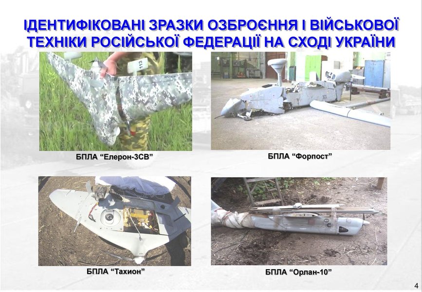 Замечены в Донбассе также современные средства и комплексы ПВО: зенитный ракетно-пушечный комплекс "Панцирь-С1", ЗРК "Тор", ПЗРК 9К333 "Верба", а также радиолокационные станции 1Л271 "Аистенок", ПСНР-8М, автомобильная радиостанция Р-140М. В небе над Донбассом были зафиксированы 4 разных типа беспилотников российского производства: "Элерон-3СВ", "Форпост", "Тахион", "Орлан-10".