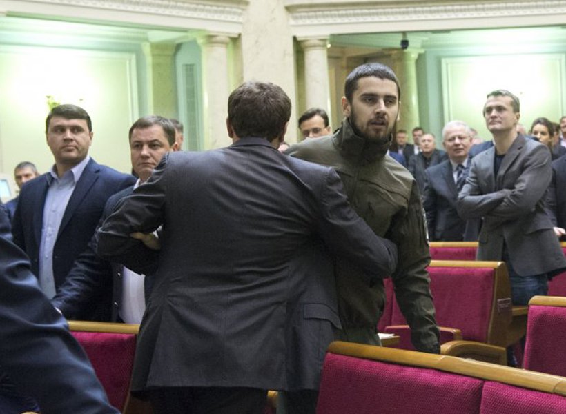 Народные избранники успокоились, отчет правительства продолжился, но его уже мало кто слушал – депутатский корпус был поглощен обсуждением инцидента. Выйдя в кулуары, они взахлеб показывали друг другу фото и видео случившегося. Заседание закрыли, фракции БПП и НФ ушли на "разбор полетов", которые для Барны завершились исключением из фракции. Но на этом его неприятности не закончились. Уже покинув парламент, на площади Конституции он столкнулся с одним из участников антиправительственной акции. "Позор вам, Барна!" - седовласый демонстрант не разделял депутатских методов борьбы. Депутат отмахнулся и в ответ получил удар пакетом по спине. Но во вторую за день драку лезть не стал, быстро ретировавшись в направлении отеля "Киев".