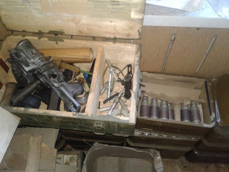 В СБУ проинформировали, что в ходе обысков правоохранители изъяли военную форму, тактическое снаряжение (бронежилеты, разгрузочные системы), защитные шлемы, четыре автомата Калашникова, два пулемета ПКТ, 12 гранатометов, 126 выстрелов к ручному противотанковому гранатомету, семь противопехотных мин, девять противотанковых мин, 23 гранаты, 160 выстрелов к подствольному гранатомету, 54 ящика патронов калибра 7,62 и 5,45 мм, 37 снарядов различного калибра, два ящика осколочно-фугасных снарядов, 600 крупнокалиберных патронов, взрывчатку МВЧ-62, 47 пороховых зарядов, два кумулятивных заряда общим весом 45 кг и девять дымовых шашек.