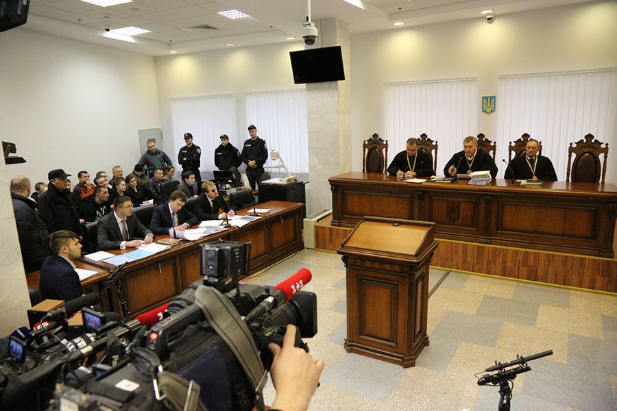 В начале заседания его защита заявила отвод всей коллегии из трех судей. Адвокаты усомнились в том, что автоматический выбор судей для рассмотрения дела был проведен объективно, ведь проводился он в нерабочее время, а сами материалы дела слишком долго ехали из Днепровского суда в Апелляционный. Прокуроры в ответ указали, что все подозрения защиты основываются на домыслах, а не на фактах, судьи также не нашли причин для отвода самих себя.