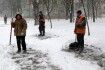 Сегодняшние осадки синоптики характеризуют как "ливневый снег", взлетно-посадочная полоса расчищается, но интенсивность нарастания снежного покрова не позволяет содержать всю полосу в приемлемых для посадки условиях.