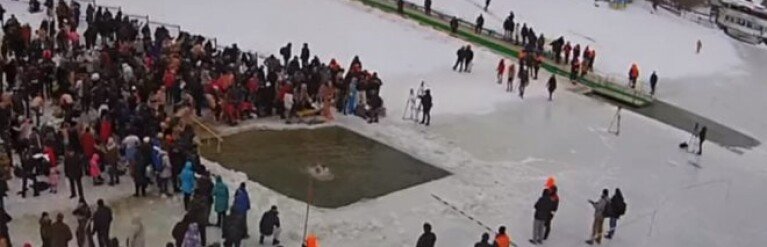 Тысячи киевлян пришли окунуться в проруби, невзирая на сильные морозы