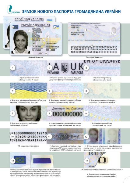Полиграфкомбинат "Украина" на своем веб-сайте обнародовал информацию о защитных особенностях паспорта гражданина Украины нового образца в виде биометрической ID-карты.