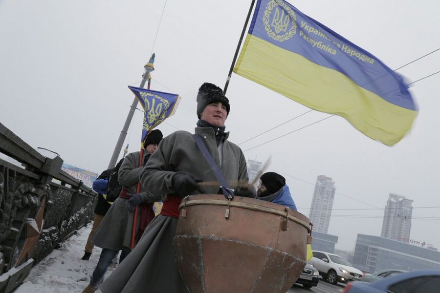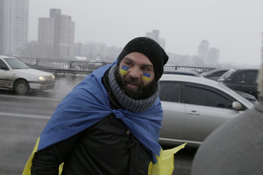 100 человек сформировали "живую цепь" на мосту Патона в Киеве по случаю Дня Соборности. Об этом сообщают "Украинские новости".
