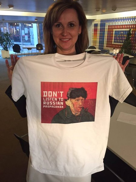 "Вчера я провел встречу с депутатами от Нидерландов, поскольку скоро там состоится референдум по ассоциации Украина-ЕС. Как символический знак поддержки, футболку принял представитель сената Нидерландов Пол Шнабель, а также член нижней палаты представителей Kooс Шувенаар. Кроме того, я встретился и с другими европарламентариями. Свою солидарность Украине выразили министр иностранных дел Турции Мевлют Чавушоглу, представители польского сейма и сената – Даниель Милевски, Ярослав Обремский и Доминик Торчинский; депутат парламента Чехии Кристина Зеленкова, а также сестра Надежды Савченко – умница и красавица Вера Савченко, которая с удовольствием надела футболку", – написал Гончаренко.