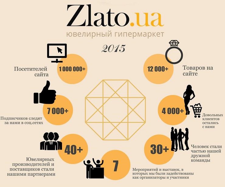 Ювелирные изделия Zlato.ua украшают, преображают и дарят лучи счастья. Подводя итоги, можно сказать, что первый год работы стал периодом становления. За это время проект расширился и стал узнаваемым, было завоевано доверие и любовь клиентов – это лучшая мотивация для команды Злато!