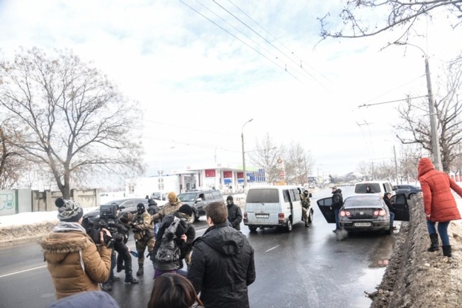 В ответ на действия СБУ жители перекрыли выезд из комплекса и начали бросаться на оперативников. Одному из протестующих, мужчине в возрасте, изрядно досталось от бойцов. Его увезла скорая помощь.