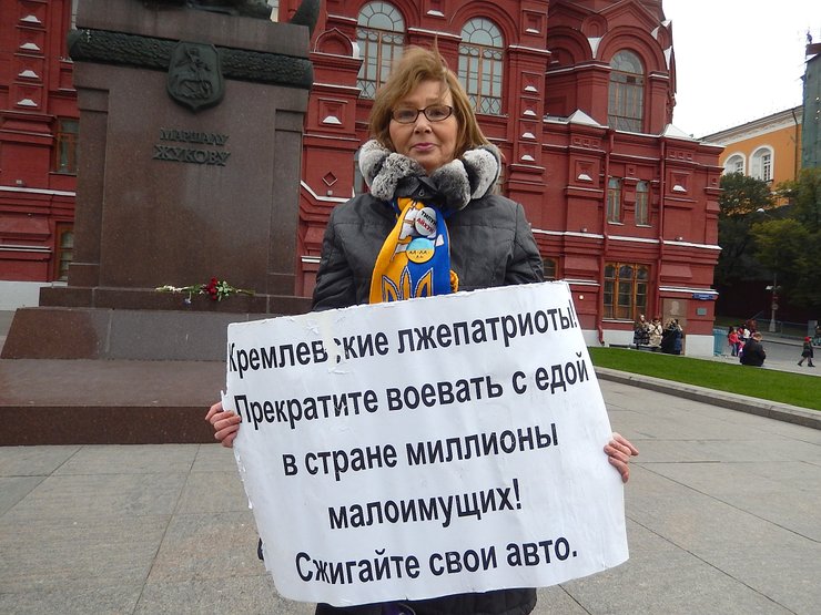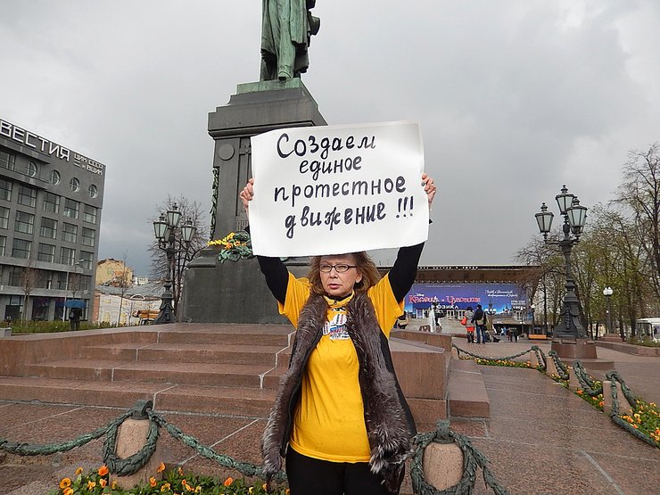 Ирина Калмыкова в одиночном пикете на Пушкинской площади