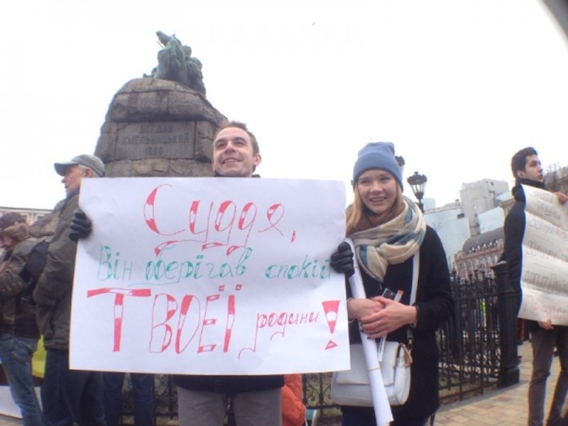 На Софийской площади в Киеве украинцы поддерживают Национальную полицию