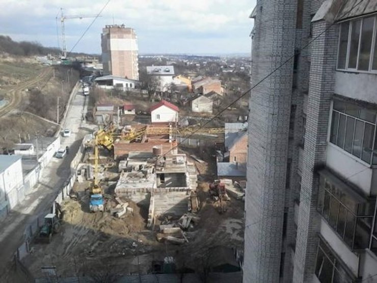Кран находился на стройке нового девятиэтажного кирпичного дома.