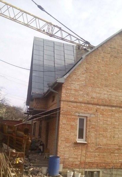 В доме проживают шесть человек, никто из них не пострадал. Кран повредил дымоход и крышу дома.