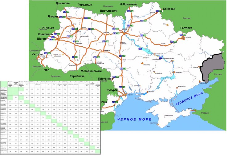 Согласно опубликованной информации, российские фуры смогут въезжать и выезжать из Украины через следующие контрольно-пропускные пункты: "Гоптовка" (Харьковская область); "Бачевск" (Сумская область); "Новые Яриловичи" (Черниговская область); "Ягодин" и "Доманово" (Волынская область); "Рава-Русская", "Краковец" и "Шегени" (Львовская область); "Ужгород" и "Чоп" (Закарпатская область); "Тереблече" (Черновицкая область); "Могилев-Подольский" (Винницкая область); "Платоново", "Кучурган" и "Рени" (Одесская область); "Городище" (Ровенская область); "Выступовичи" (Житомирская область).