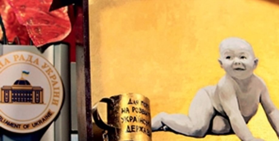 Памятник Ющенко представляет собой икону, на которой на желтом фоне изображен 7-месячный младенец. К раме иконы прикреплена железная кружка, которая предназначена для разных валют мира.
