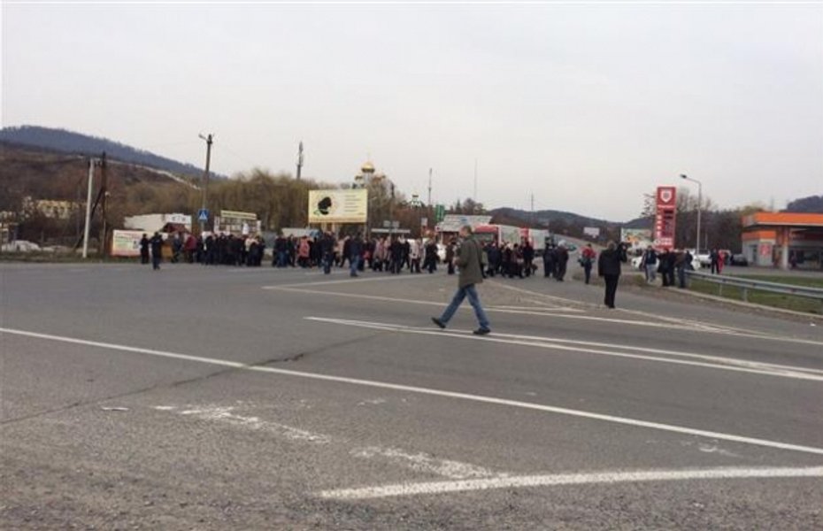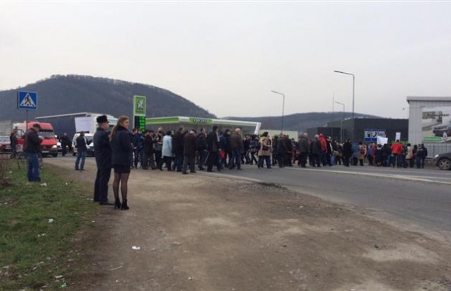 Около 15:00 участники акции протеста заблокировали международную трассу Киев – Чоп в районе обеих АЗС – в сторону Ужгорода и в сторону Свалявы, а также въезд в город через улицу Данила Галицкого. Во всех трех местах люди ходили толпой по пешеходным переходам.