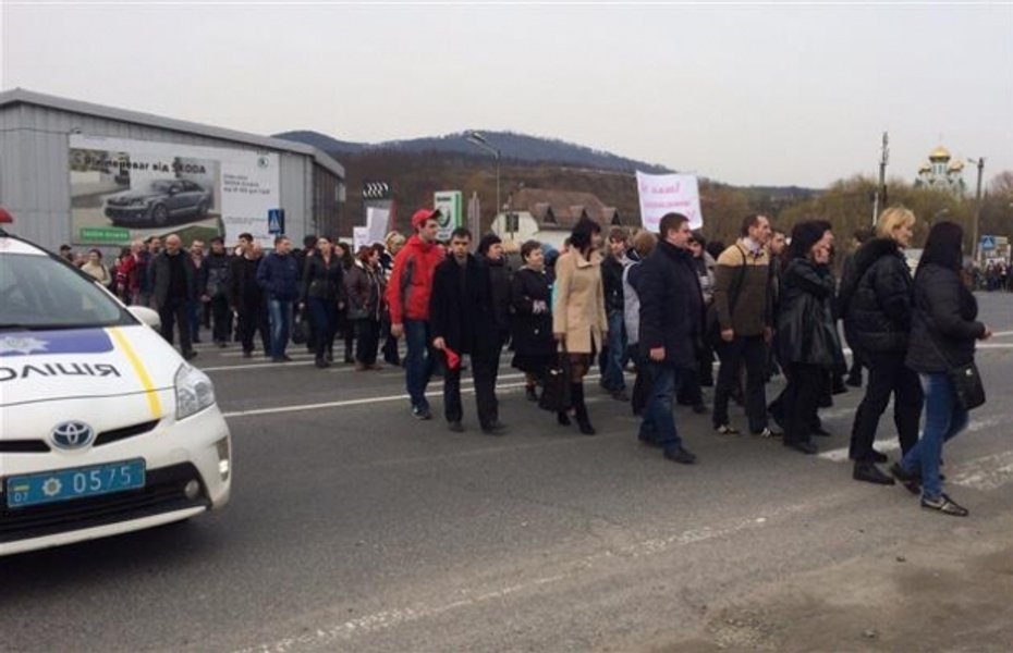 Сегодня в Мукачево работники и студенты двух местных ПТУ в течение часа перекрывали международную трассу Киев – Чоп.