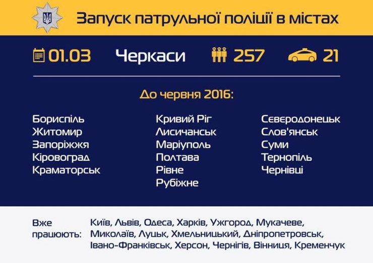 Напомним, к июню 2016 года патрульная полиция будет работать на улицах 29 городов Украины.