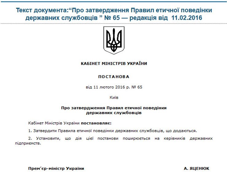 Кабмин утвердил правила этического поведения госслужащих