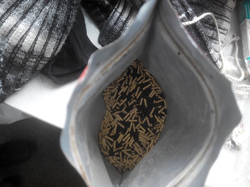 В пластиковом контейнере вместе с перемолотым салом были спрятаны 5 зарядов для миномета калибра 82 мм, в банке с вареньем были помещены 4 патрона калибра 12,7 мм, а в пачке из-под кофе находился порох.